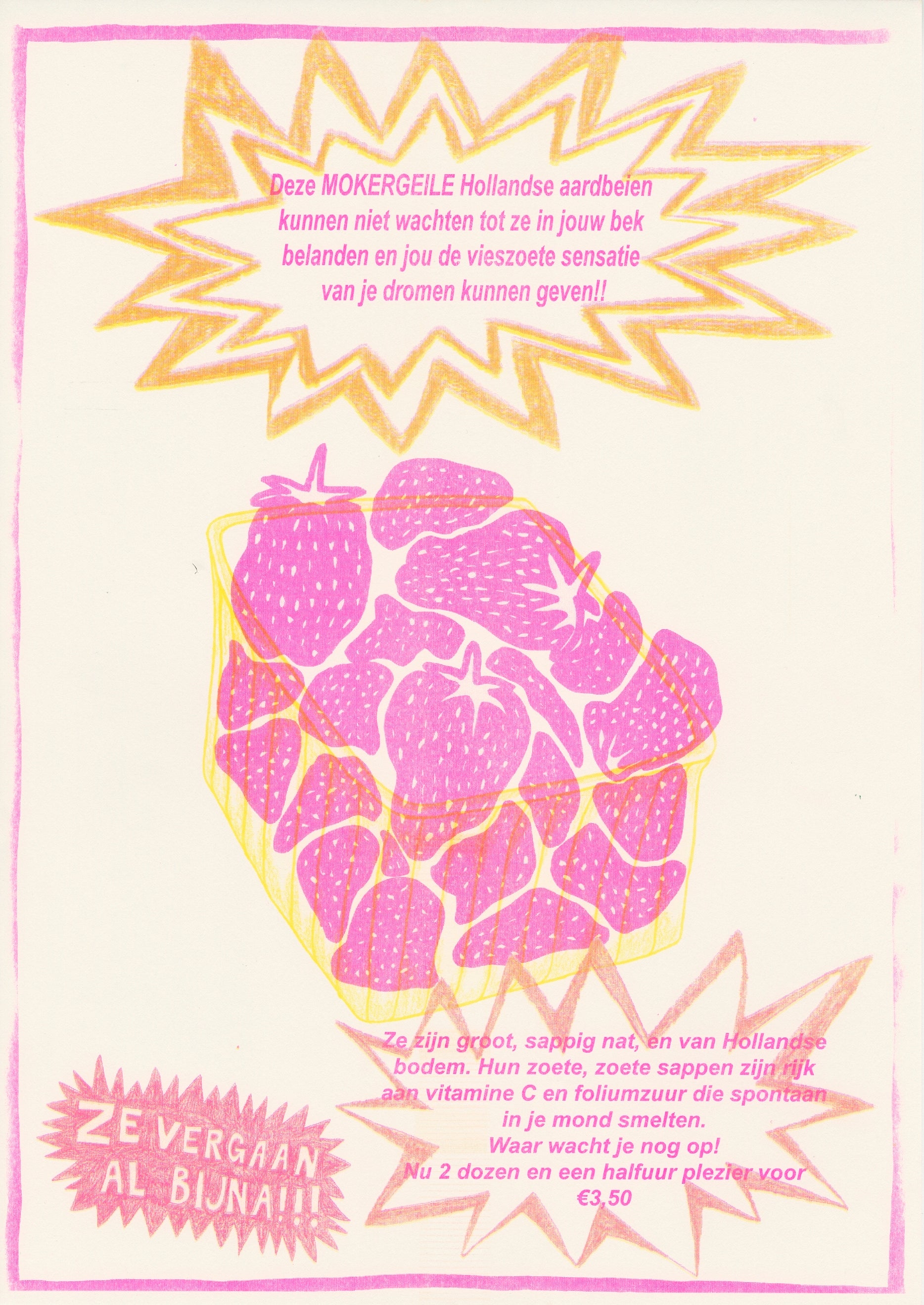 Een originele risoprint uit mijn afstudeerproject 'Ik hou van Holland' en de prints waardoor Lustige Lente is ontstaan. Let op: dit is een beperkte oplage.